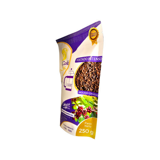Café Especial orgánico. Tueste Intenso. Molido Grueso.